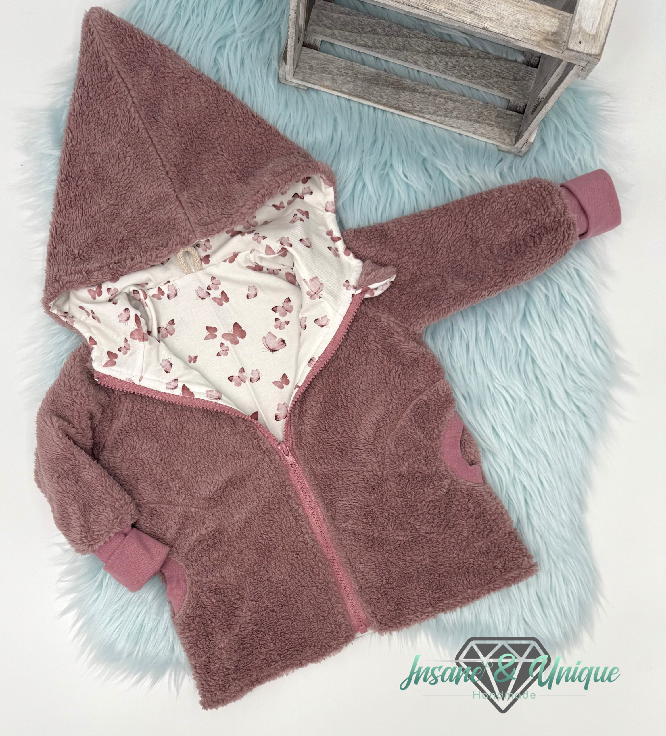 Unsere Teddy-Sherpa-Jacke wird mit viel Liebe & höchster Sorgfalt handgefertigt – denn wir wissen, dass Kinderkleidung nicht nur gut aussehen, sondern auch gemütlich & praktisch sein muss!