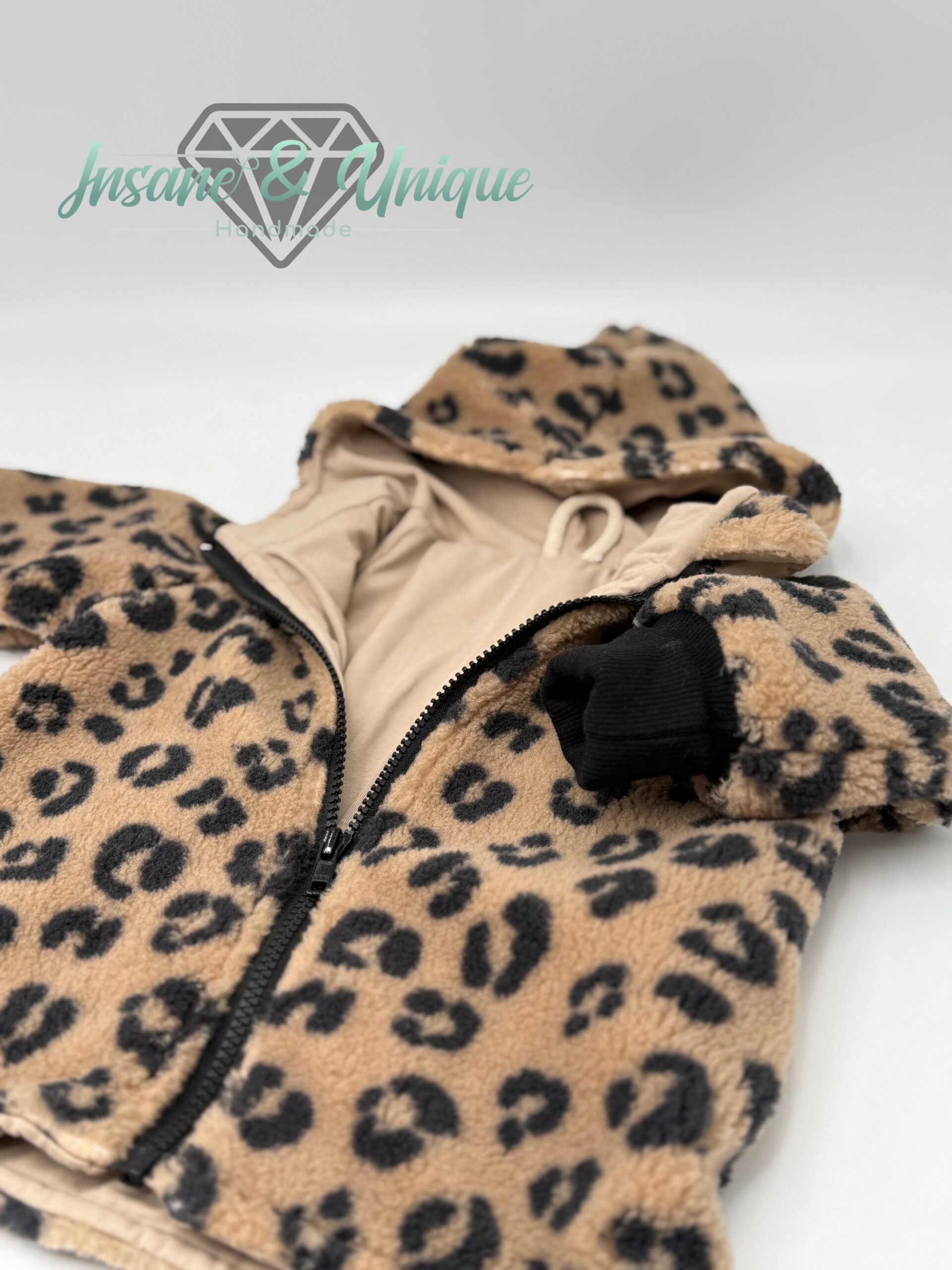 Kuschelige Teddy-Sherpa Jacke mit Leo-Print oder Uni und Jersey-Futter – perfekt für Frühling, Übergang und kühle Sommerabende – Insane & Unique